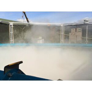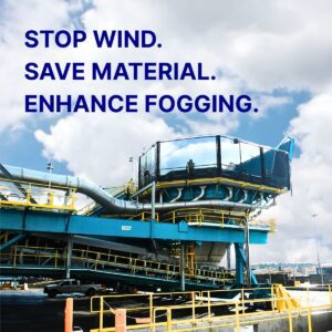 The same goes for dry fogging systems in dust mitigation. Unfortunately, this has negative impacts on the effectiveness of the fogging system. If the fog that is supposed to be suppressing the dust is blowing away, then it won’t be very effective at dust control. This is where a wind fence enclosure can help.