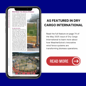 Read the full feature on page 74 of the May 2025 issue of Dry Cargo International to learn more about how WeatherSolve’s innovative wind fence systems are transforming biomass operations.